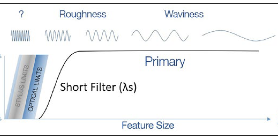 Figure 4. The Short Filter defines the smallest features to include when calculating roughness parameters. Image courtesy The Surface Texture Answer Book [1].