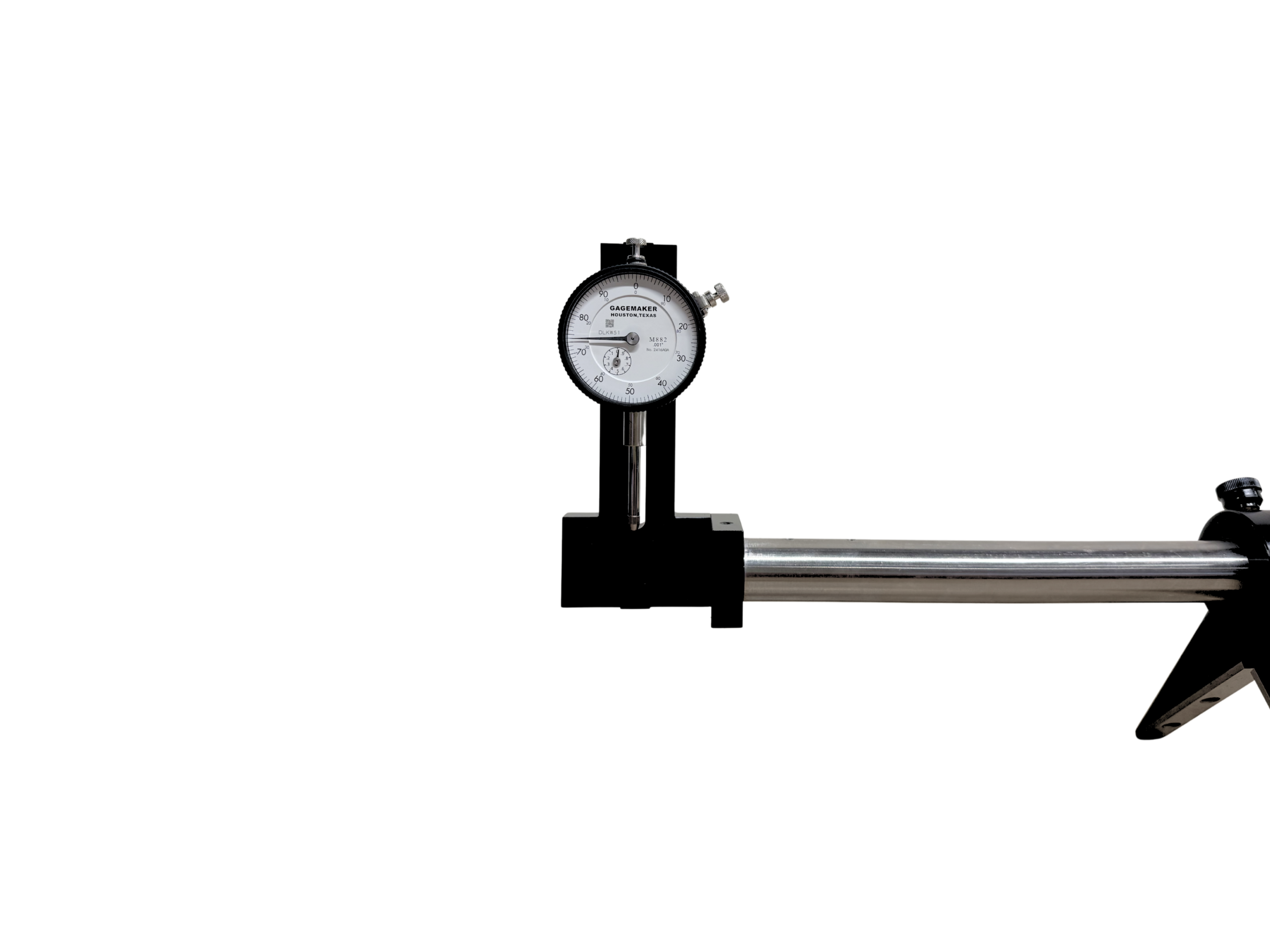 Finally, the indicator is a 1″ travel Mitutoyo dial indicator with a slotted back for easy replacement and adjustment.