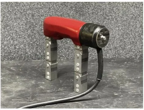 WC-6 uses Western Instruments’ WC-Series Platform, which is utilized in all the WC-Series models. This Platform design is similar to our standard W-Series Platform, but far more compact, with the Urethane Rubber housing providing superior durability in rugged environments. This construction versatility is possible through our advanced Mechanical, Electrical, and Solid State Electronics designs. These designs permit the WC-Series to use our standard low profile sealed membrane activation switch, continuing our philosophy for operator safety, as the switch has a grounding provision and conducts less than 1/2 watt of power. All W-Series Yokes have more height between the operator’s hand and the work piece, which means faster inspections due to a larger view of the target area. All these advancements permit all our AC Yokes to have a extended duty cycle!